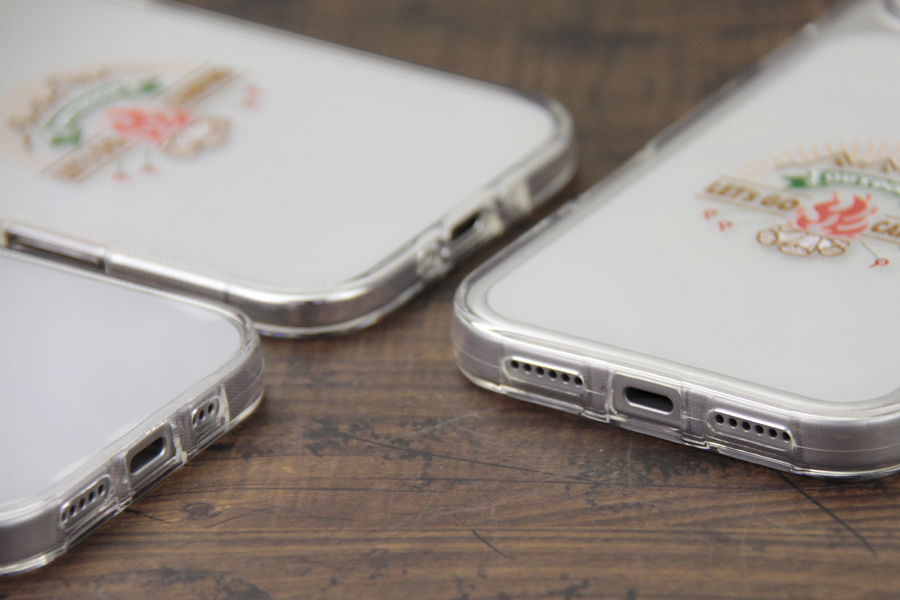 ・クリアケースで、iPhone本体の背面デザイン(ロゴマーク等)に合わせたデザイン作成はお控えください。